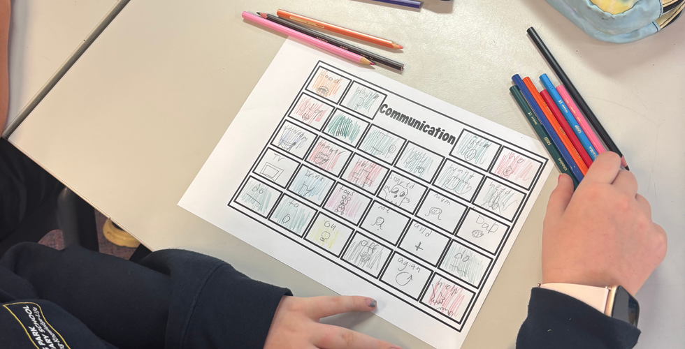 Using the blank AAC template, students design their own boards with words and phrases they’d want to use if they couldn’t speak (emotions, questions, needs, and social expressions).